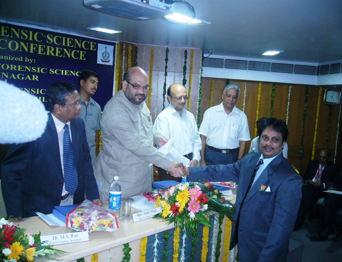 Meritorious Award Received from DFS, Ministry of Home Affairs, New Delhi in 2006 At Gujarat From Gujarat Home Minister Shri Amit Shah for Meritorious Services in Crime Scene Investigation in recognition of outstanding contributions made in the field of “Crime Scene Management and Forensic Science Support to Investigating Officers” and for attending more than 6000 crime scenes and the clues collected in solving the Bomb Blast case of “Attack on Ex. CM Shri N.Chandra Babu Naidu with Claymore Mines” at Alpiri, at Tirumala ghat road.