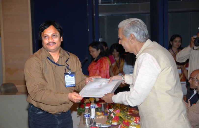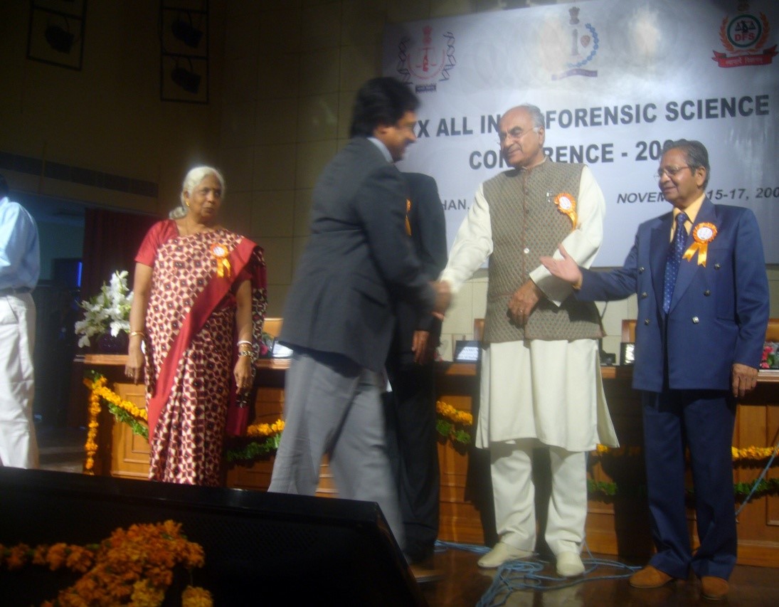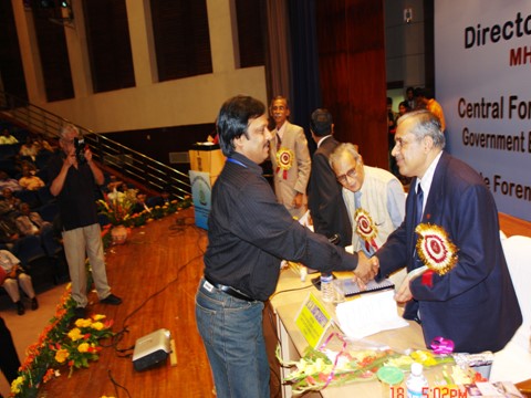 Received from DFS, Ministry of Home Affairs, New Delhi in All India Forensic Science Conference-2008 held at Gujarat from Shri Ashok Bhai, Speaker, Gujarat for Best Paper in Crime Scene Management “A Comparison study of Twin blast case (Lumbini Gokhul chat) with Macca Masjid Blast Case” and for Diffusion of live bomb found in Macca Masjid in saving of huge mass of Namazies.