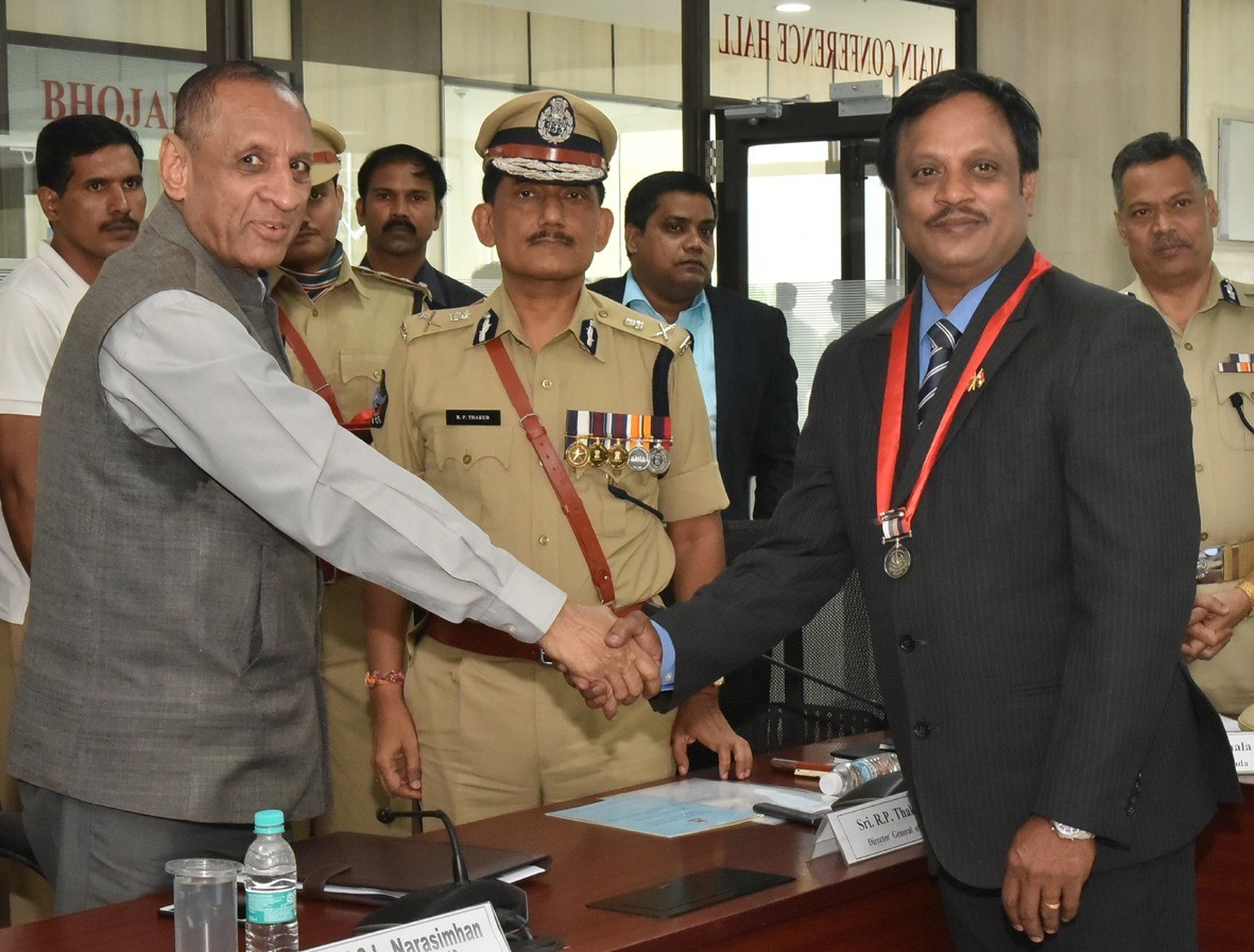 “Union Home Minister’s Medal for Excellence in Police Training “For best Indore Faculty, A P Police Academy -24 Nov 2018 from the Honourable Governor of AP Shri Narisimhan in AP DGP office.