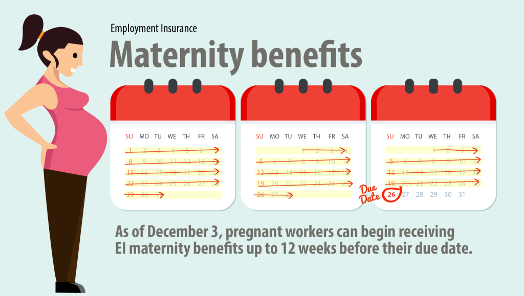 We would advise you to apply for your EI maternity and/or parental benefits as soon as you can begin to receive EI maternity benefits from the onset of your third trimester itself, or roughly 12 weeks before your due date.